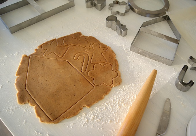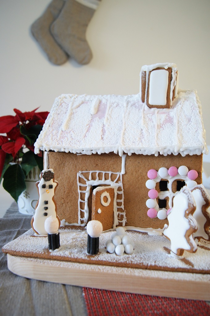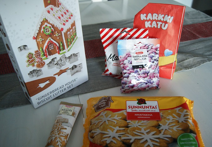 Jouluaskarteluihin kuuluu piparkakkutalo, joka on aina tehty yhdessä kotona Raahessa. Viime vuonna tein itse ensimmäistä kertaa piparkakkutalon ja toisin kuten meillä kotona, missä käytetään valmista kaupasta saatavaa talon pohjaa, tein pohjan paperimuoteilla. Lopputulos oli kivannäköinen ja onnistunut, mutta se oli turhan hankalaa. Viime jouluna huomasin Lidlissä piparkakkutalomuottisarjan, joka oli mielestäni paras idea ikinä ja jonka päätin sitten hommata. Tämän vuoden talo on siis tehty tuolla muotilla. Ja pipariksihan se meni. Tänä vuonna ihan kaikki meni pieleen tuon talon kanssa. Pikeeri oli liian löysää, kattopalaset olivat liian pienet ja unohtuivat uuniin eli paloivat lähes mustaksi. Jouduin siirtämään seiniä lähemmäksi toisiaan ja sahaamaan veitsellä pienemmäksi sen jälkeen kun ne oli jo kiinnitetty pohjaan. Eli eihän siitä mitään tullut. Mutta näin tänä vuonna. Ensi kerralla paremmin. Ja näin jälkikäteen vain huvittaa miten vakavasti otin tuon piparkakkutalon valmistuksen silloin.
