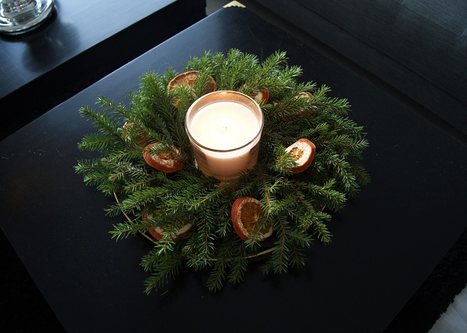 Koristelin kotia myös ulkoa hakemillani kuusenhavuilla. Tavoitteena oli että koti tuoksuisi aidolta joulukuuselta, sillä sellaista emme aikoneet hankkia, mutta kaipasin joulun tuoksua. No arvatkaas kun eihän se toiminutkaan. Eivät ne tuoksuneet yhtään! Eivät nuo leikatut ja kuivatut eivätkä myöskään vesikupissa olevat, joista yksi on jo kasvattanut uutta versoakin. Mutta onhan ne onneksi nätit silti.