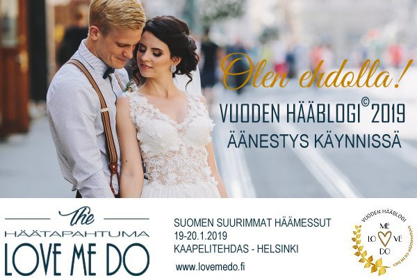 Mikään ei voisi olla minulle suurempi kunnia kuin saada olla ehdokkaana Vuoden hääblogi -äänestyksessä! Vaikka olenkin hääbloggaaja, bloggaaminen on minulle nautinnollista ja jatkan sitä vielä varmasti myös häiden jälkeen.