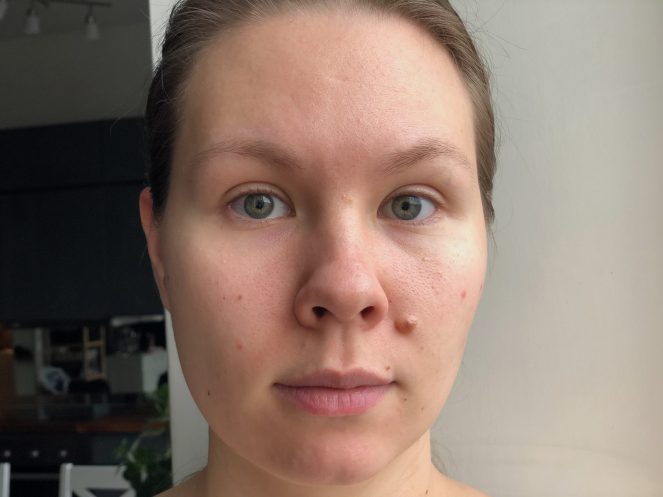 Tasan viikon päästä hoidosta kasvot olivat jo lähes normaalit. Vaikka en kuvista huomannut suurtakaan muutosta, minusta tuntui että näin sen silti ihossani. Ihoni on paljon tasaisemman värinen ja ihohuokoset tuntuvat pienentyneen. Aion ehdottomasti jatkaa sarjahoitoa ja kosmetologin suositusten mukaisesti sopiva hoitoväli on 3-4 viikkoa. Varasin juuri seuraavan hoidon viikon päähän ja valitsin tällä kertaa astetta vahvemman happohoidon, koska kosmetologi sanoi että minulle voitaisiin kokeilla myös sitä seuraavaksi.