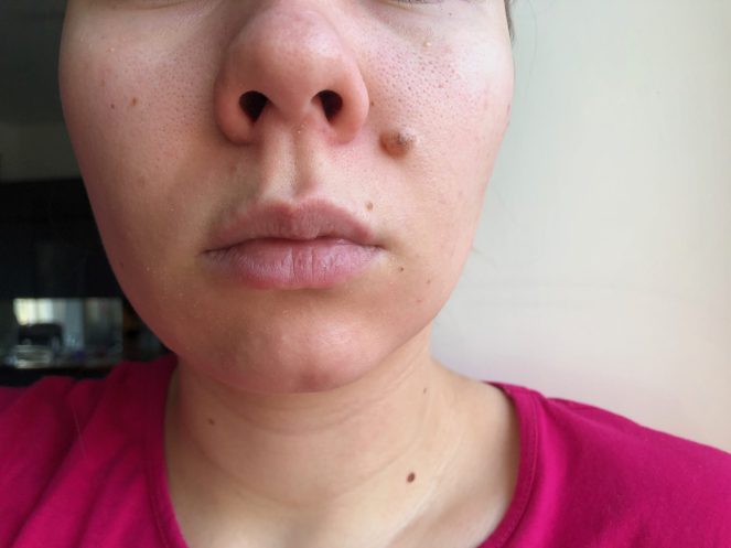 Kaksi ensimmäistä päivää hoidon jälkeen sujui hyvin. Iho ei edes juurikaan punoittanut ja näytti todella tasaiselta ja kirkkaalta, minkä olin huomannut heti hoidon jälkeen. Kosmetologi oli sanonut, että ihoa saattaa kiristää ja se tuntuikin hieman kuivemmalta kuin tavallista. Kolmantena päivänä iho alkoi kuitenkin reagoida. Juurikin se sama leuan alue alkoi kirveltää ja se tuli todella punaiseksi. Iho meni epätasaiseksi kuin siinä olisi ollut ihottumaa. Soitin Blue Lagooniin kysyäkseni, että olivatko oireeni normaaleja ja he vakuuttivat oireiden laantuvan parin päivän kuluessa. Lauantaina eli viidentenä päivänä huomasin, että kirvely alkoi laantua, mutta iho oli alkanut kuoriutua. Olin pitänyt hoidon jälkeen meikkiä töissä, mutta hilseilevä iho teki siitä ihan kauhean näköisen. Meikki nimittäin vain korosti ihon kuivuutta ja hilseilyä. Hilseily näytti siltä, kuin iho olisi ollut todella todella kuiva. Hilseilyn huomasi erityisesti leuassa, nenän pielissä ja otsassa kulmien välissä.