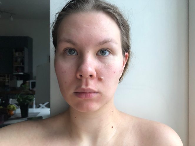 - kasvot pyyhittiin aineella, joka vei kaiken rasvaisuuden kasvoilta