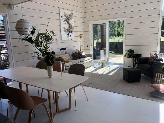 Häiden jälkeen jatkoimme kesken jäänyttä asunnonmetsästysprojektia. Otimme siihen vauhtia Tuusulan asuntomessuilta, joista olisin halunnut kirjoittaa blogiinkin kokonaisen postauksen, mutta aika ei ollut vain sopiva. Kerron kuitenkin lyhyesti, että mielestäni asuntomessut olivat todella onnistuneet tänä vuonna. Oli mukava nähdä taas todella erilaisia kohteita, joissa oli tehty persoonallisia ratkaisuja. Oma suosikkini oli kohde nro 30 nimeltään Jämerä Salmiakki juurikin sen persoonallisuuden vuoksi. Koti oli moderni, mutta kotoisa ja lämminhenkinen.