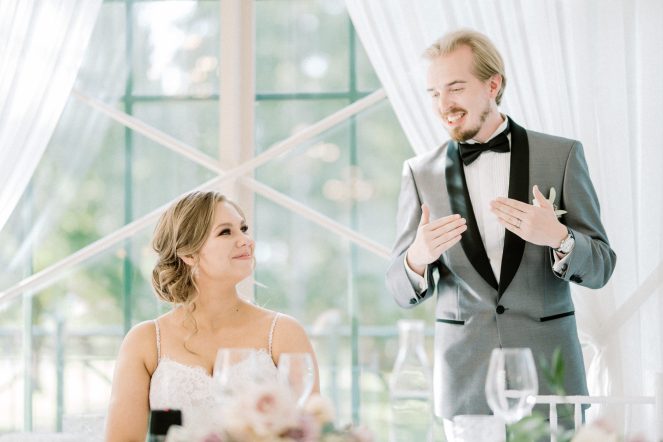 Ensimmäinen yhteinen hääleikki oli huiskutuspeli, jota varten askartelimme huiskutuskepit. Tai siis todellisuudessa äitini askarteli minun antamieni ohjeiden mukaan, joita sovelsin blogikollegoiden (Jasmine Maria – the wedding blog ja Syysmorsian 2019) blogista löytyneistä ohjeista. Jos et tiedä mikä leikin idea on, ohjeet löytyy helposti googlettamalla esimerkiksi ”liehutuspeli”. Lyhyesti ilmaistuna kyseessä on vieraiden tutustumisleikki. Huiskutuskepit olivat hauska lisä tähän leikkiin, jonka olisi voinut toteuttaa myös niin, että vieraat nousevat seisomaan. Meidän koristeisiin ja teemaan sopivia keppejä oli todella vaikea löytää valmiina ja siksi ainoa keino oli tehdä ne itse. Mielestäni toteutus onnistui hyvin ja siitä iso kiitos kuuluu äidilleni ja siskolleni.