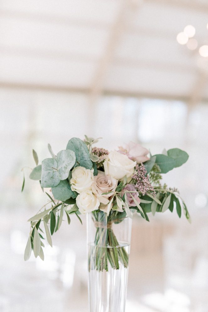 Ne kukat sitten. Olen lyhyesti maininnut kukista ja niihin liittyvästä harmistuksestani jo aikaisemmin blogissani. Jos olet lukenut Häät-lehden meistä tekemän artikkelin, tiedät varmasti miten paljon ne minua harmittivat. Siihen asti kaikki oli mennyt suhteellisen hyvin ja pienistä takaiskuista huolimatta olin hyvällä tuulella. Ensin saliin astuessani luulin, että kukat puuttuvat kokonaan. Vähitellen oivallus iski ja uskon että harmistus alkoi näkymään kasvoiltani. Olin toivonut suuria ja näyttäviä kukka-asetelmia, jotka nousevat korkealle vieraiden yläpuolelle. Olimme tilanneet kukkia joka toiseen pöytään säästääksemme rahaa, jotta voisimme panostaa pöytäkukkien näyttävyyteen määrän sijaan.