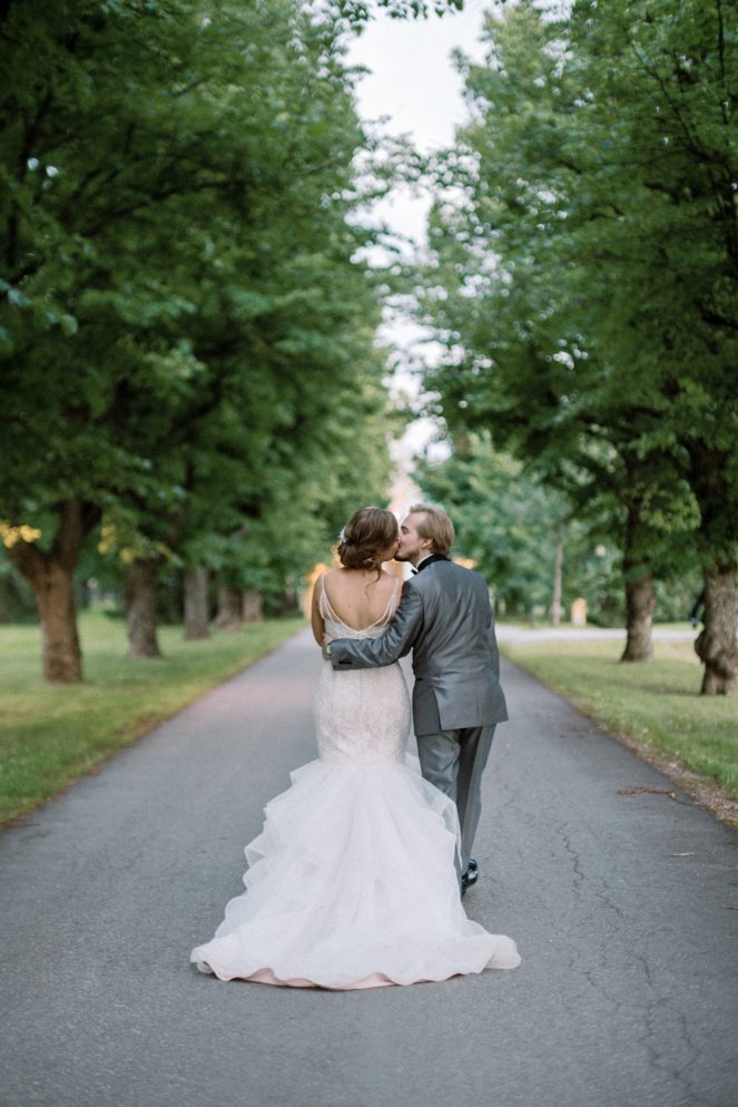 Vihkimisen jälkeen suuntasimme Helsingin keskustassa kuvauspaikalle, jonka olimme sopineet etukäteen. Kävi kuitenkin niin, että olimme ymmärtäneet sovitun paikan väärin ja odottelimme siellä turhaan useamman minuutin. Tämä venytti vähän alunperin sovittua aikataulua ja olin stressaantunut siitä, että se söi meidän muutenkin vähäistä kuvausaikaamme keskustassa. Päätimme kuitenkin kuvata rauhassa, vaikka se vaarantaisi illan tarkasti suunnitellun aikataulun. Kuvausten jälkeen ajoimme kartanolle, jossa olimme päättäneet ottaa juhlasalissa eli lasipaviljongin puolella muutaman kuvan ennen vieraille esittäytymistä.