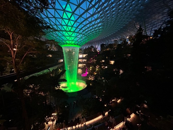 Tullessamme takaisin Australiasta saavuimme myöhään aamuyöstä Changin lentokentälle. Olimme varanneet hotellin lentokenttähotellista, mikä osoittautui todella fiksuksi päätökseksi. Emme ehtineet nukkua juuri enempää kuin 6 tuntia, koska huone piti luovuttaa pois keskipäivään mennessä. Jätimme kuitenkin hyvillä mielin matkalaukut säilöön lentokentälle ja lähdimme Singaporen keskustaan. Kaupungilla suuntasimme suoraan shoppailemaan Orchard Roadin kauppakeskuksiin. Shoppailuhetken jälkeen meillä oli ylimääräistä aikaa, joten päätimme ostaa pääsyliput sekä Cloud Forestiin että Flower Domeen, jotka molemmat sijaitsevat Gardens by the Bay:n alueella. Cloud Forestissa oli menossa hieno Avatar-teemainen näyttely, joka oli todella suosittu. Näiden jälkeen suuntasimme takaisin tutkimaan Changin lentokentän kauppoja ja tunnelmaa. Paluulento takaisin Helsinkiin lähti 22.30.