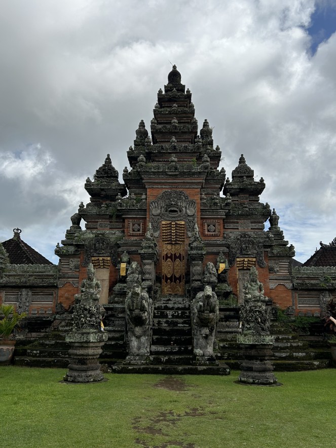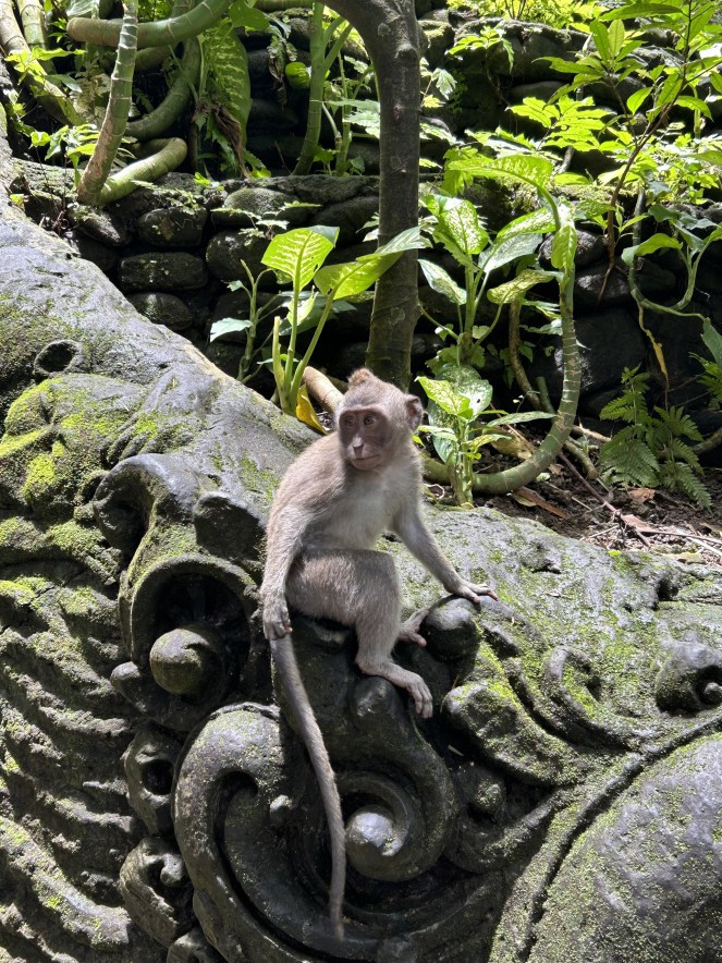 Lopulta pääsimme yhteisymmärrykseen. Selitimme selkeästi tietyt asiat ja nähtävyydet, jotka haluaisimme nähdä ja ilmaisimme halumme luopua osasta meille suunnitelluista aktiviteeteista. Pysähdyimme ensin oppaan suosituksesta katsomaan perinteistä balilaista tanssiesitystä, minkä jälkeen ajoimme perille Ubudiin saakka. Ubudiin oli reilu tunnin ajomatka ja pysähdyimme siellä ensimmäisenä Monkey Forest -puistossa. Se oli hauska kokemus, vaikkakin aika turistimainen kohde. Seuraavaksi opas esitteli meille Ubud Palace:n, joka oli vanha kuninkaallinen palatsi. Palatsissa pääsimme näkemään läheltä koristeellista balilaista arkkitehtuuria. Oppaan mukaan palatsia käytettiin edelleen suorittamaan kuninkaallisia rituaaleja.
