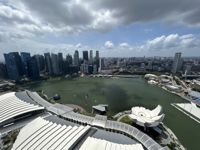 Meidän hotellimme oli kävelymatkan päässä Marina Baysta ja tärkeimmistä nähtävyyksistä, joten nautimme aurinkoisesta säästä ja kuljimme lähes koko päivän jalan. Ensin kävelimme Singaporejokea pitkin Marina Baylle ja sieltä rantaa pitkin F1-radan pääsuoralle. Sen jälkeen kävimme Marina Bay Sandsin katolla ja Art Science museossa, joka oli viihdyttävä sekä meille aikuisille että siellä pörrääville lapsille. Marina Baysta kävelimme takaisin hotellille lepäämään ja vaihtamaan vaatteet.