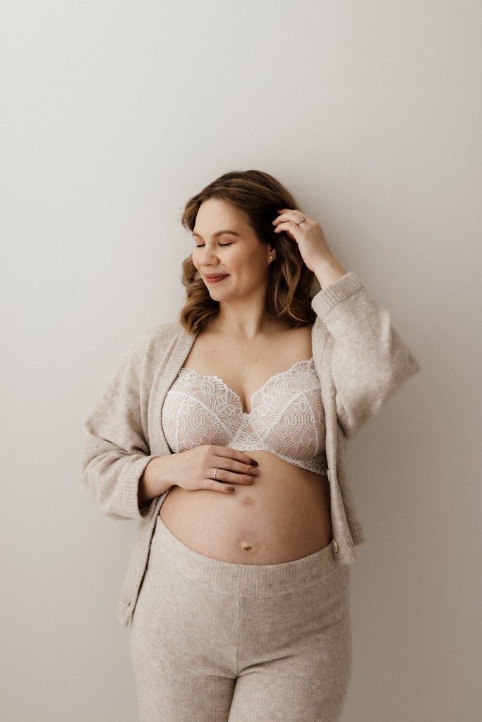 Joulukuuhun mahtui myös paljon kivoja raskauteen liittyviä asioita. Aloitin raskausajan pilateskurssin Wario Mama’silla, minkä huomasin olevan todella hyvä tapa saada liikkuvuutta kehoon kipujen lomassa. Pilatesohjaaja osasi neuvoa hyviä venytysasentoja sekä lantionpohjaa vahvistavia liikkeitä. Lisäksi varasin odotusajan valokuvauksen raskausviikolle 32 ja kuvista tuli aivan upeita. Valokuvaajaksi valikoitui Laura Schneider, joka on todella taitava kuvaamaan erityisesti vastasyntyneitä. Hänen kuvaus- ja editointityylinsä on omaan makuuni juuri sopivan neutraali, pehmeä ja herkkä, joten halusin hänet ikuistamaan myös raskausvatsani. Kävimme tosiaan ottamassa myös newborn-kuvat vauvastamme ja saamme ne nähtäväksi ihan tässä lähipäivinä!